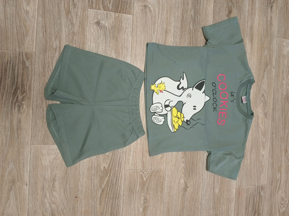 Костюм понравился, особенно футболка. Можно носить на улицу. Шорты больше пижамного типа, ткань тонкая и без карманов.